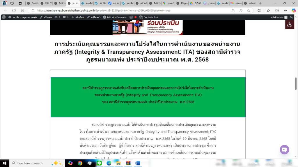 4.ประชาสัมพันธ์ข้อมูลการประเมินคุณธรรมและความโปร่งใสในการดําเนินงาน ของหน่วยงานภาครัฐ (Integrity & Transparency Assessment: ITA) ของสถานีตํารวจภูธร พิบูลมังสาหาร ประจําปีงบประมาณ พ.ศ. 2568